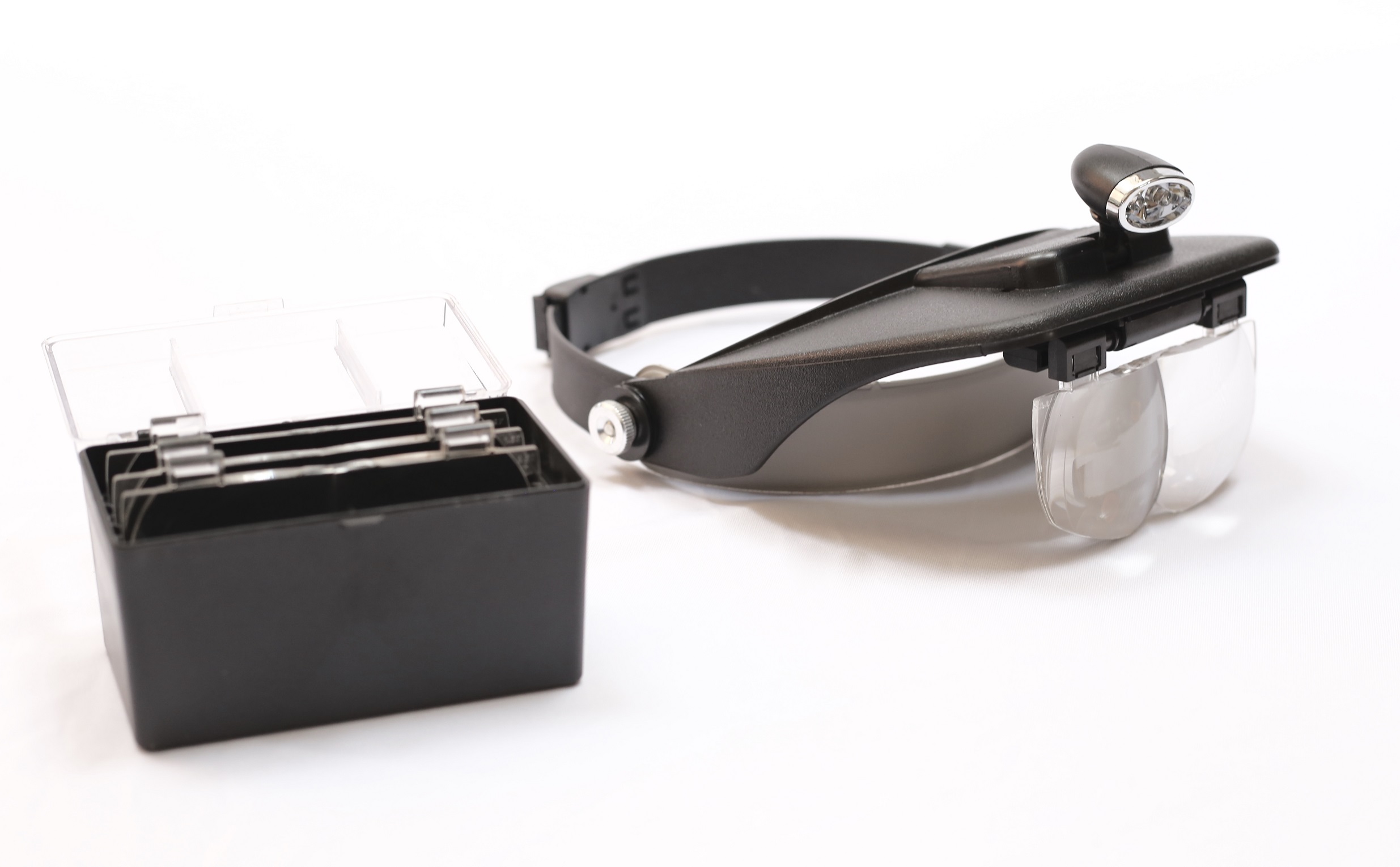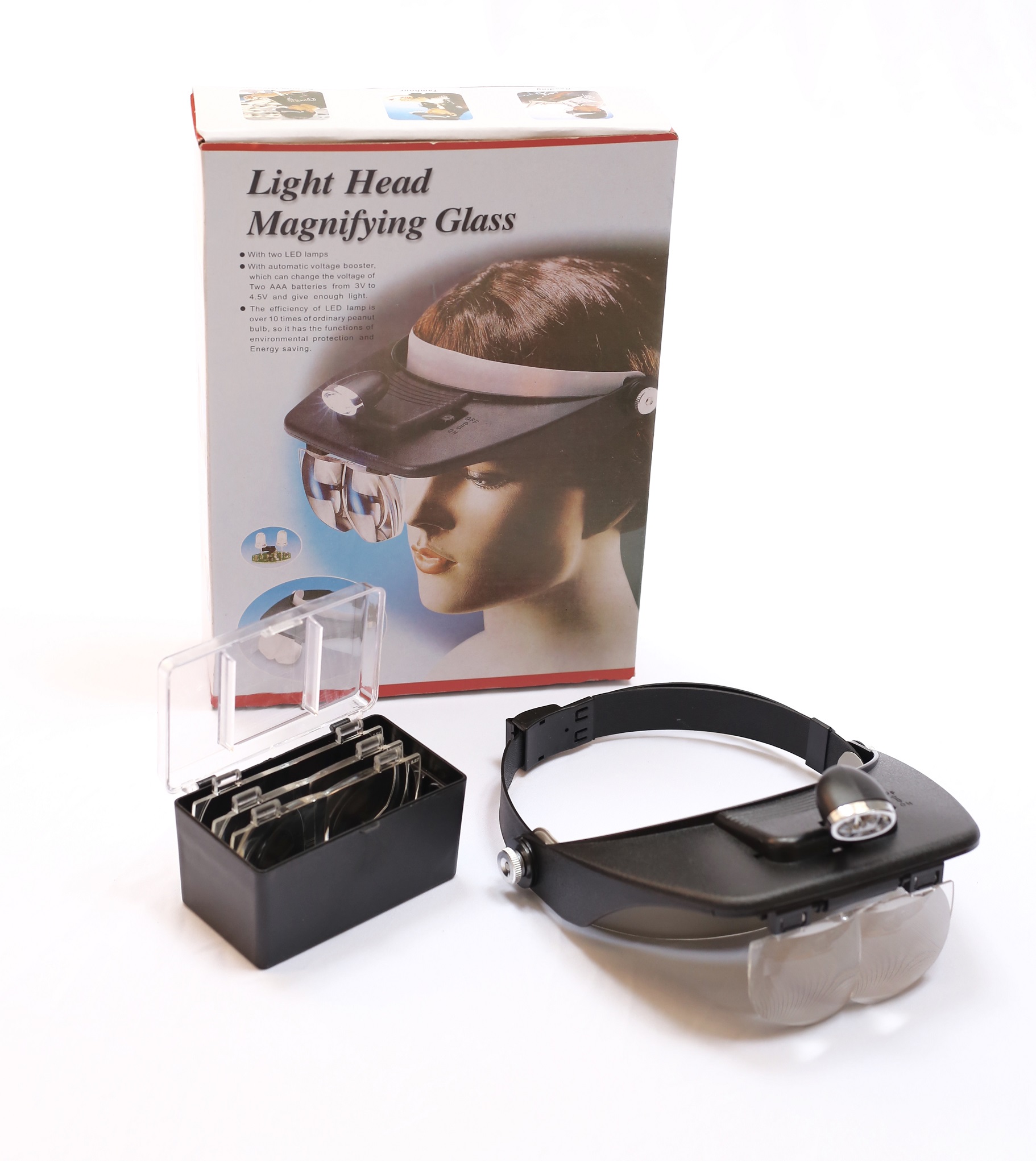 Čelní hlavová lupa s osvětlením veliký pomocník nejenom při hledání matek. Čelní hlavová lupa je ve předu konstruována se sklopnou částí a osvětlení - 2 ks žárovek, napájení 2 x 2 ks tužkových baterií typ AA/UM 3-1,5V, které nejsou součástí lupy. Fixace je zabezpečena pomocí náhlavního pásku se suchým zipem, která je nastavitelná. V balení jsou dodávané 4 dioptrické skla, které je lze dle potřeby měnit a kombinovat ve dvou řadách umístěných za sebou.