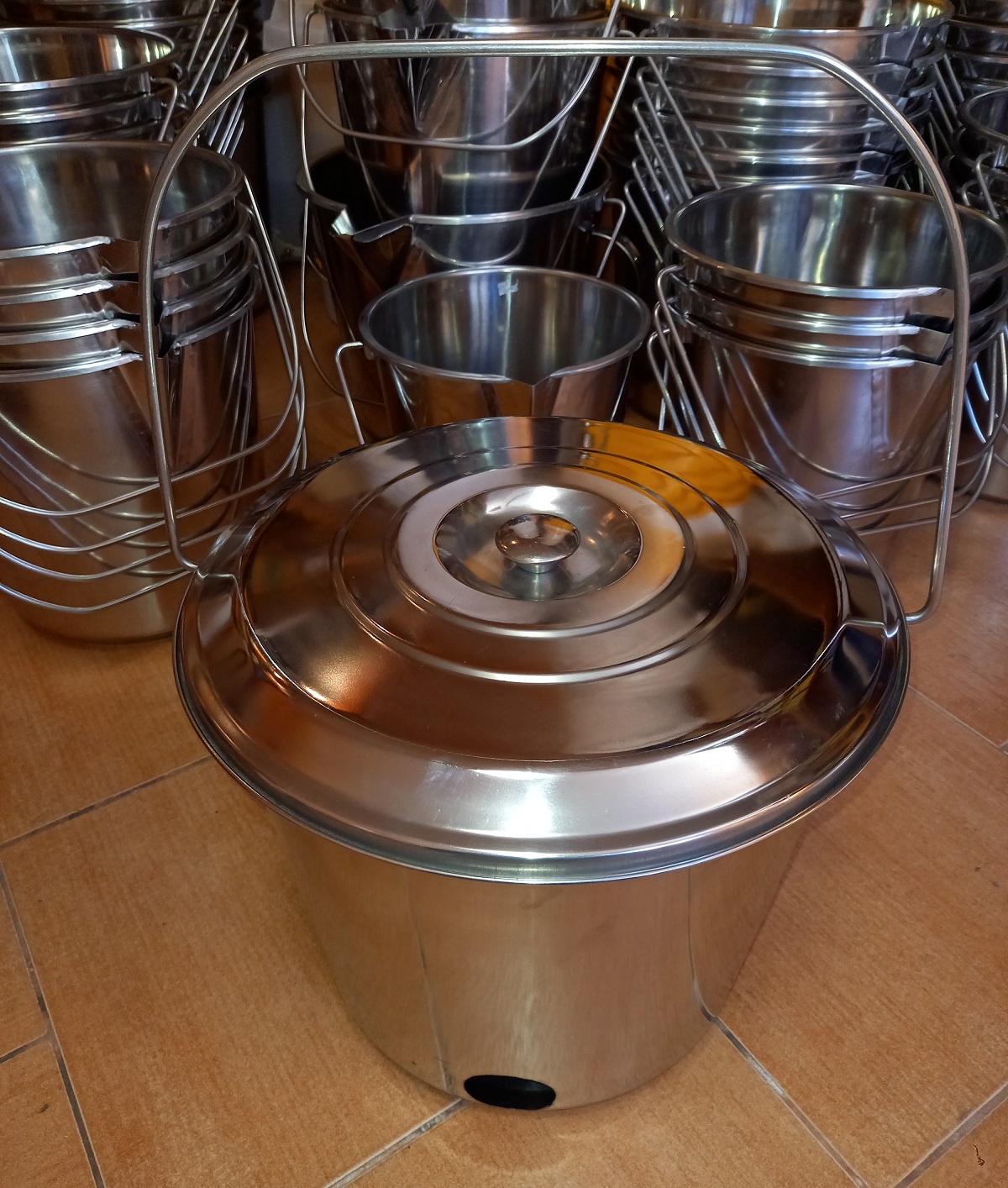 Nerezové vědro s otvorem a víkem 18l / velmi kvalitní nerez vědro ze silného nerezu 18/10.