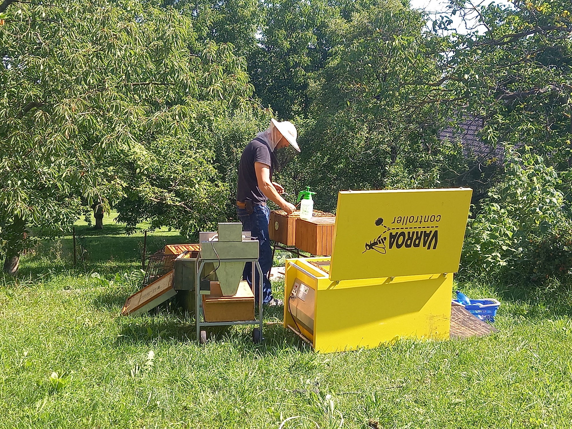S přístrojem Varroa controler je lehká manipulace, důležité je mít ale přístup k elektřině / 800 W. Přístroj se používá hned z jara při ošetření včelstev, když venkovní teplota dosahuje 18´C. Plodové rámky vybereme z plodiště bez včel je vložíme do přistroje a zasuneme teplotní senzor do plodového plástu. Do přístroje doplníme destilovanou vodu. Program ošetření včelstev probíhá automaticky / 2 hodiny. Přístroj byl v roce 2017 testovaným německým včelařským institutem ve Veitshöchheime a jeho účinnost vůči roztočům byla stanovena stanovená na 97%.
