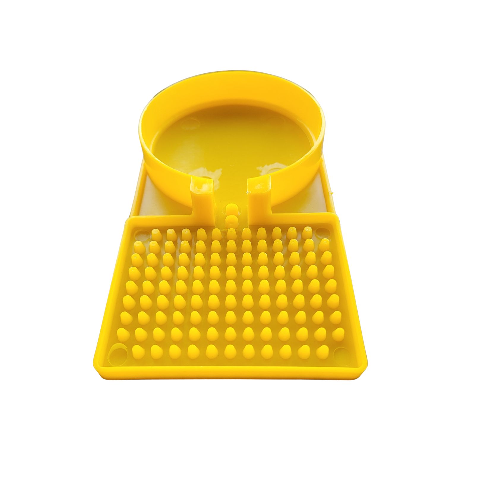 Bezpečné napájení bez utonutí: Žlutá nášlapná plocha je opatřena hustou sítí protiskluzových výstupků. Ty včelám poskytují pevnou oporu, takže se mohou bezpečně napít u hladiny, aniž by hrozilo jejich utonutí.