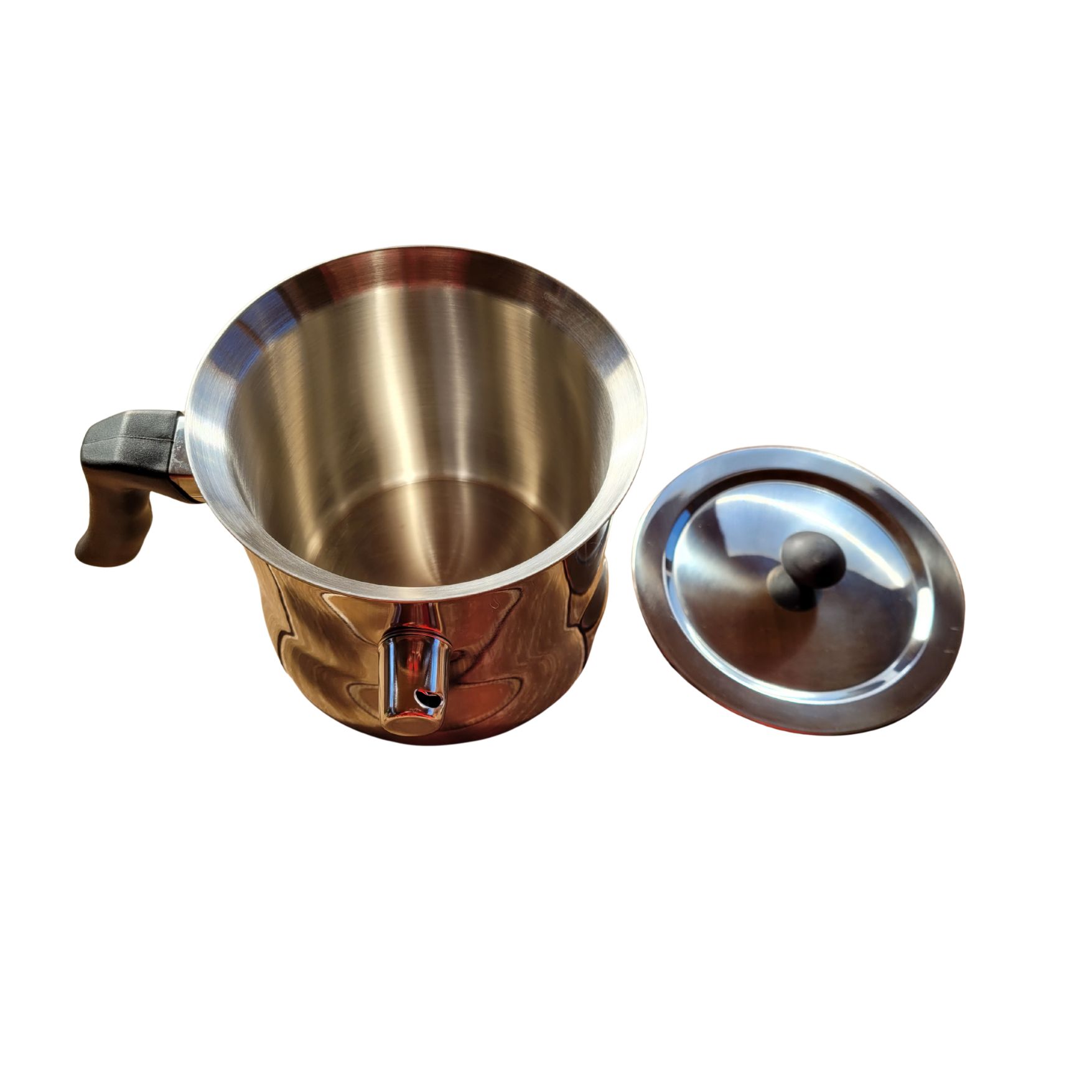 Praktická nálevka a rukojeť: Ergonomické ucho a tvarovaný okraj umožňují velmi přesné lití rozehřátého vosku i do úzkých silikonových nebo plastových forem na svíčky.