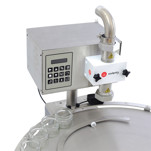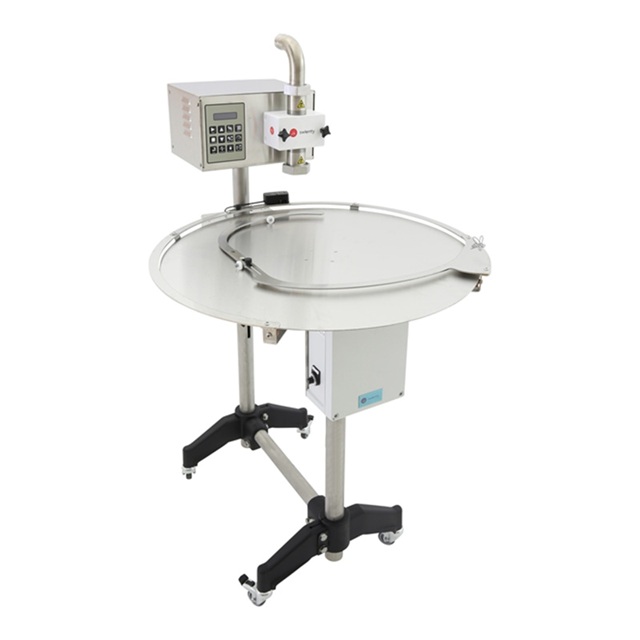 Stůl pracuje automaticky: prázdné nádoby se umístí na stůl a jsou dopravovány po kolejnici k drátovému spínači. Když nádoba narazí na kolejnici, stůl se automaticky zastaví a plnicí stroj spustí cyklus. Po naplnění nádoby se stůl opět otočí k další prázdné nádobě.