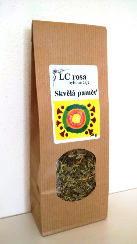 Sypaný čaj s ginkgem, dobromyslí, mateří douškou, šípkem. balení 50g, příprava- 2 zarovnané pol. lžíce se zalijí 0,5 litrem horké vody a nechá se 10 až 15 min. louhovat