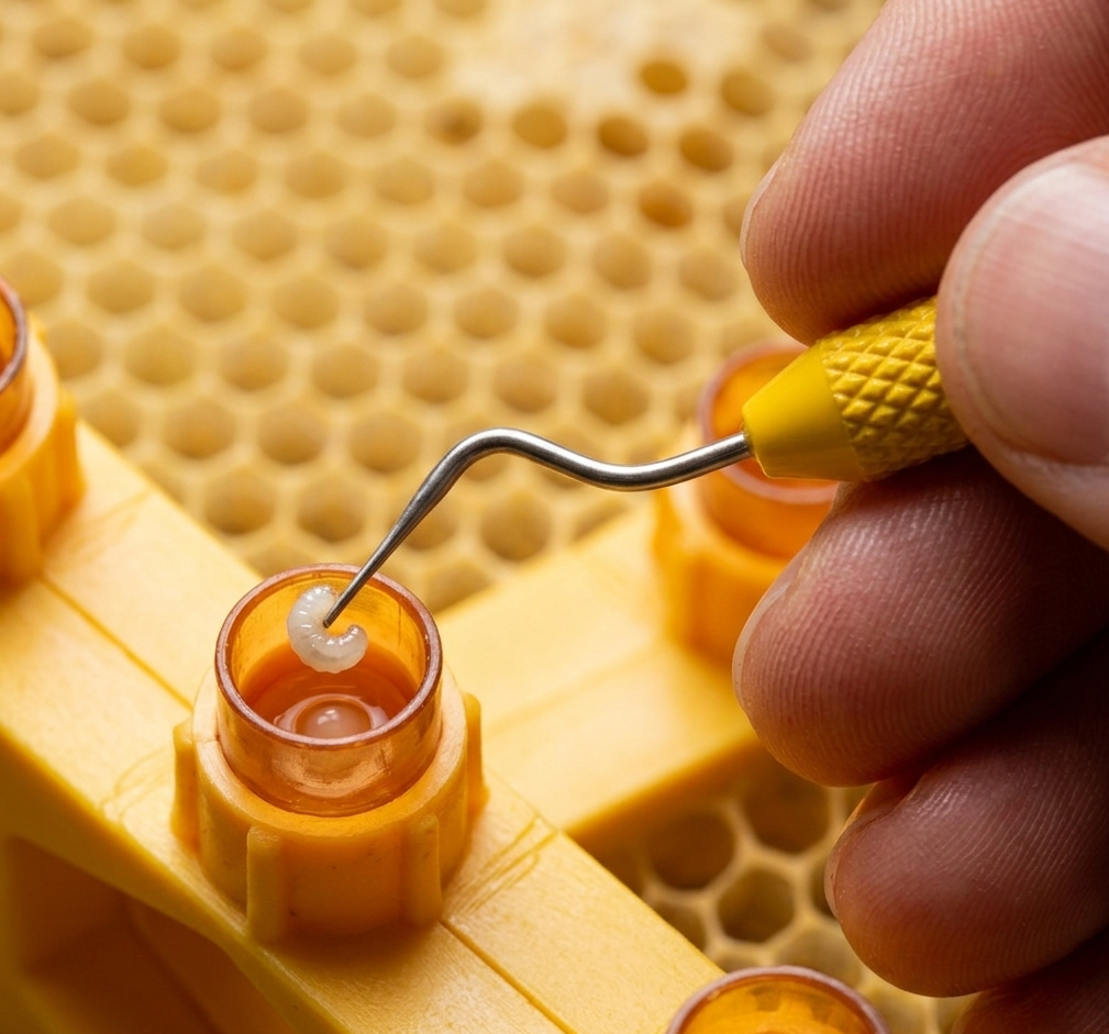 Špičkový nástroj pro náročné chovatele včelích matek. Extrémně tenká nerezová jehla a ergonomicky zesílená rukojeť zaručují dokonalý cit při práci. Pokud hledáte nástroj, který vám usnadní přelarvování a zvýší úspěšnost přijetí larev, je tato švýcarská lžička jasnou volbou. Kvalita bez kompromisů.