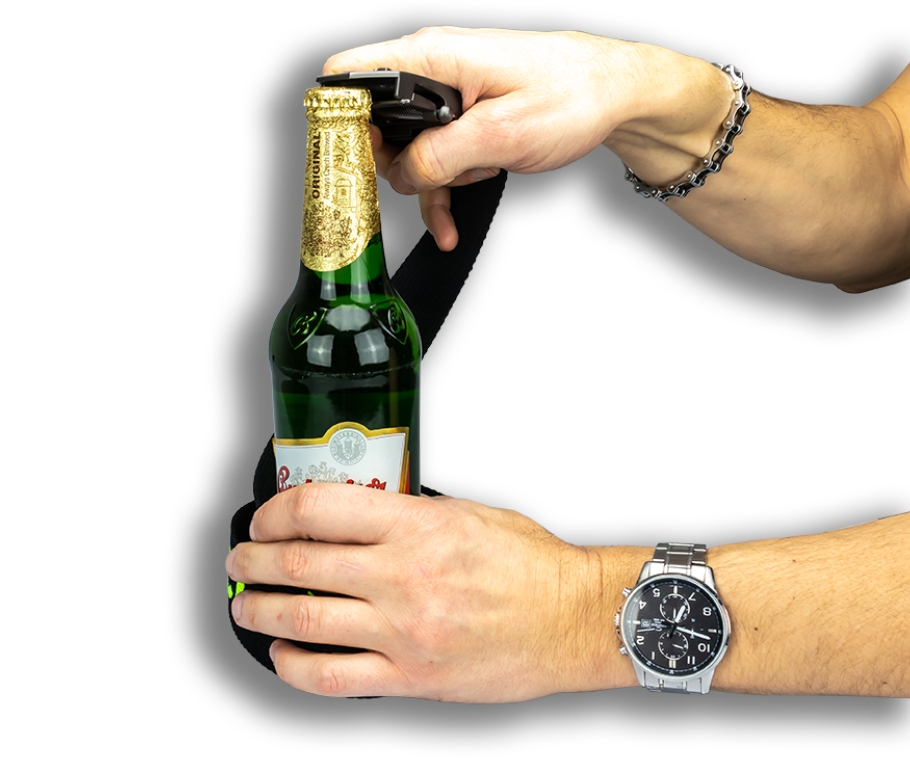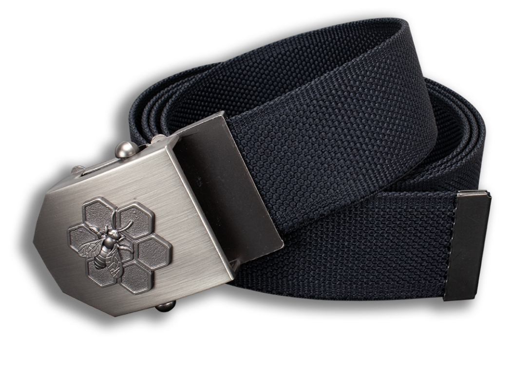 Masivní kovová přezka s ostře řezanými rysy obsahuje 3D motiv včelaři. Přezku lze použít jako otvírák na pivo. Atraktivní vzhled podtrhuje luxusní povrchová úprava starostříbro. Zubový mechanismus přezky umožňuje velmi snadné zkrácení textilního popruhu podle potřeby zákazníka. Jedna univerzální délka popruhu 150 cm uspokojí všechny zákazníky.