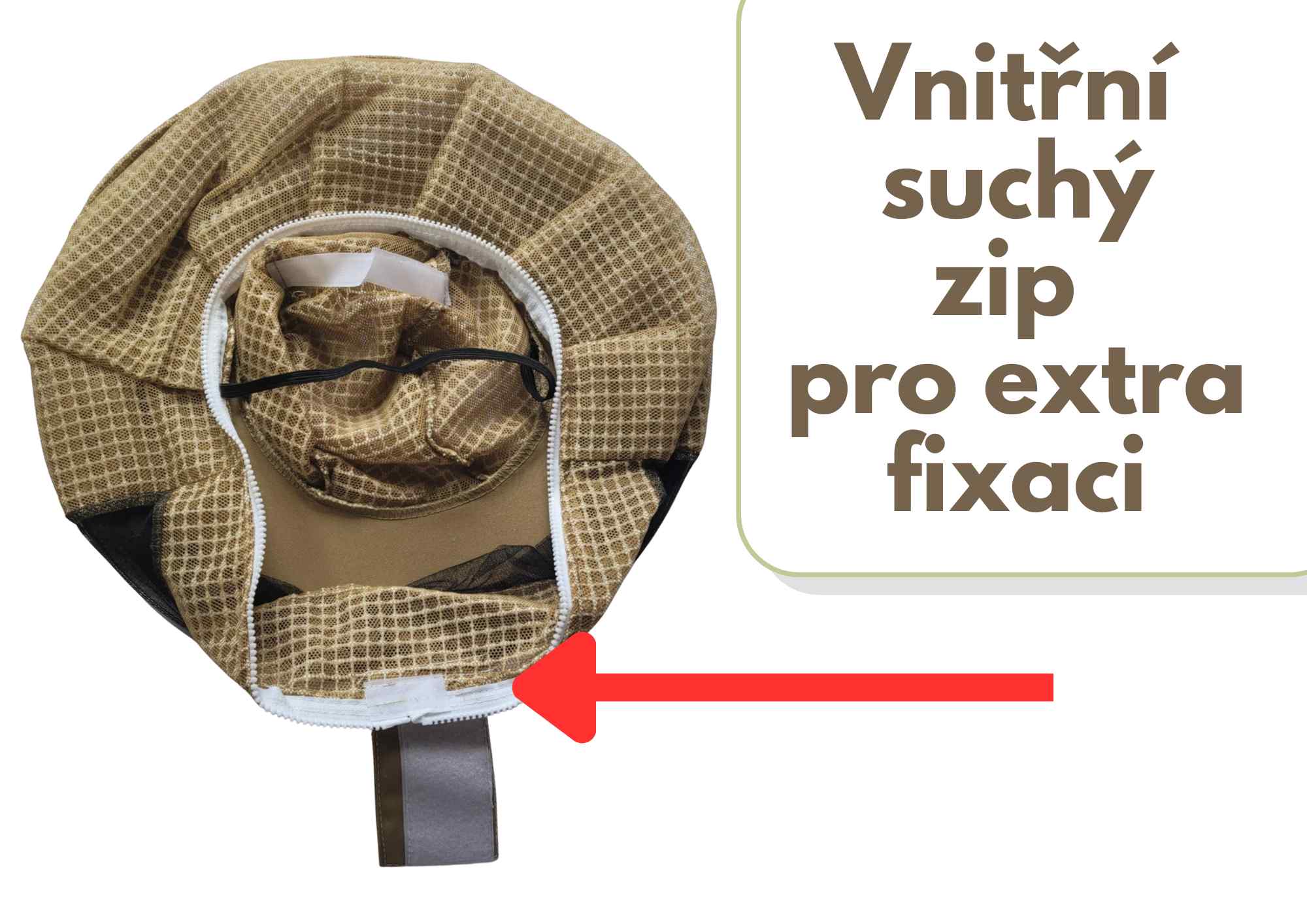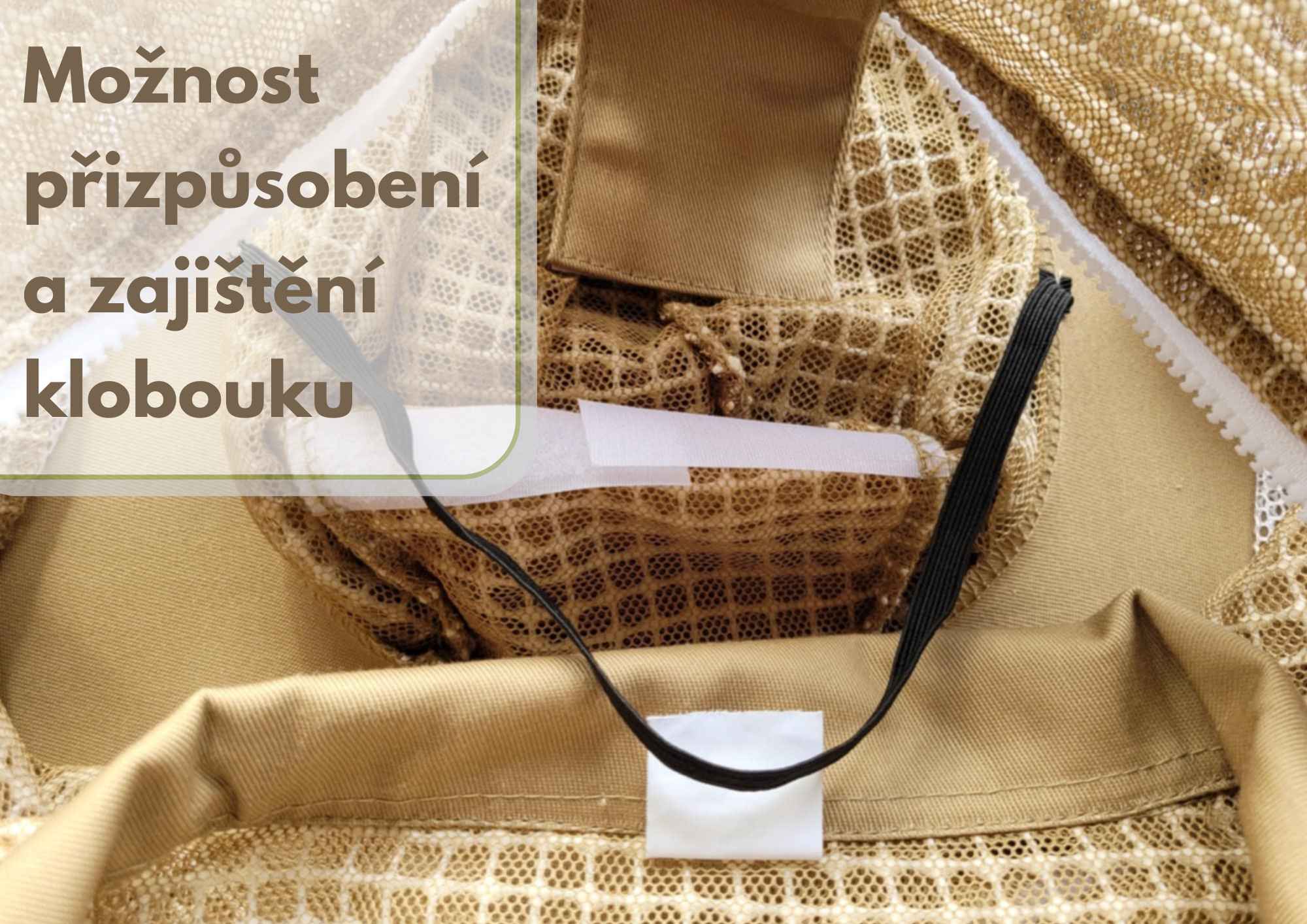- Možnost přizpůsobení podle rozměrů hlavy včelaře, stahovací pásky a možnost úpravy dle velikosti hlavy.